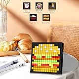 LED Display: 7.9 inch art display frame, equipped with 16x16 LED array panel, can be served as a digital clock, alarm clock, stopwatch, schedule, etc; Retro appearance design, suitable for home, office, store, cafe shop, etc Convenient to Use: This LED dot array screen is powered by a USB cable, plug and play, and easy to install; Equipped with a bracket that allows you to safely place it on the desktop, with two hanging slots, it can also be installed on the wall Innovative Design: This programmable screen supports APP control and provides graffiti function. You can create images and animations with your children or family to enhance your family relationships and cultivate kids imagination Enhanced Experience: The APP provides a variety of materials, and you can also add your own materials, making it a great addition; Enhance your gaming, movie, and music experiences through music modes and vivid art animations Digital Clock: LED display design that can display clearly even in the dark; You can choose different clock according to your preferences and synchronize them directly with your phone time without the need for manual adjustment
