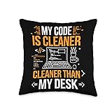 100% Polyester Software Developer Coder Programmer Programming. Are you an IT specialist into software development? Grab this My Code Is Cleaner Than My Desk. Ideal for a software developer expert in programming and coding. Are you a programmer or coder looking for a software developer apparel for men and women? Then this is for you. Ideal for a software developer while coding websites or software applications. 100% spun-polyester fabric Double-sided print Filled with 100% polyester and sewn closed Individually cut and sewn by hand Spot clean/dry clean only