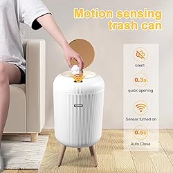 Touchless Motion Sensor Technology :Equipped with advanced infrared sensors, this automatic trash can opens in just 0.1 seconds when motion is detected and closes after 5 seconds of inactivity. Simply wave your hand or knee for a hands-free, hygienic experience. It operates on 2 AA batteries (not included), providing a convenient, touch-free solution for your daily needs Stylish & Ergonomic Design :Featuring a modern striped barrel with a wood grain lid, this trash can combines functionality with style. Standing 16 inches tall on three 4.3-inch legs, it eliminates the need to bend over when disposing of trash. Its compact 3-gallon size fits seamlessly in bathrooms, bedrooms, living rooms, offices, and more, making it ideal for small spaces Odor Control & Clean Appearance :The lidded design effectively contains odors, maintaining a fresh indoor environment. The inner fixing ring holds the garbage bag securely, preventing slippage and keeping the bag concealed for a clean, tidy appearance that complements any room Durable & Quiet Operation :Crafted from high-quality, IPX5-rated waterproof ABS material, this trash can is durable and suitable for use in damp environments like bathrooms. The lid opens and closes smoothly and quietly, ensuring minimal disturbance, even in quiet settings Customer Satisfaction Guaranteed :We are committed to providing exceptional customer service. If you experience any issues with product quality or damage during transit, contact us anytime for prompt assistance. Enjoy peace of mind with our unconditional return and exchange policy