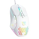 Wired PC Gaming Mouse: High Precision Sensor,RGB Backlit, Adjustable DPI, 7 Buttons Programmable,Ergonomic mice for Office & Gaming on Windows/Mac/Linux/Chrome-White