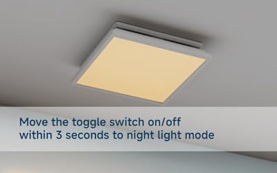 Quiet bathroom fan and Strong air movement (110CFM) for bathroom up to 115 Sq. Ft. The white, stylish LED light grille combo with a unique technical design integrates the lights and the grille together. You can choose the light you like to create a chic atmosphere for your room. It is recommened to use two switches to control the light and fan separately. 1000LM & 5CCT LED Light -bright 1000lm LED light will light your whole bathroom. The bathroom exhaust fan with light has 5 adjustable color temperatures (2700K/3000K/3500K/4000K /5000K ).Move the toggle switch located at the back of the grill to change color temperature.For Dimmable, use dimmer switch to adjust the brightness of white light. NOTE: Move the wall switch on/off within 3 seconds to Night light mode. Two installation options: 1. For New Construction: Attach the fan housing and mount it to the ceiling joists, if spacing is under 12in. ( if spacing is between16 in.- 24 in, It can using suspension brackets.) 2. For Existing Construction : With No attic access installation and replaces most existing bathroom fans. it can be done entirely from the room-ceiling side – no attic access needed installation. Galvanized steel Housing resists corrosion and low profile white grill cover. Housing size: 9in x 8.5in x 6in with 4in duct. ceiling mounting Opening: 9.25in x 8.9in. Efficient and quiet,excellent motor perfomance, working at least 25000 hours. Energy Star qualified, UL and HVI certified for performance assurance.Acceptable for use over a bathtub or shower when installed in a GFCI-protected branch circuit.