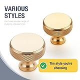 JOY DECOR 30 Pack Brushed Brass Kitchen Cabinet Hardware Knobs Round Solid Knurled Handles Single Hole Drawer Knobs for Cabinet Furniture Brass Dresser Pulls