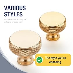 After-sale Service Promise - 365 Days of Risk-Free Satisfaction - Joy Decor offers a 365-day risk-free after-sales service, you can order with confidence. JOY DECOE brings you a truly joyful decoration experience. Size Matters: Top Diameter 1-1/5"(30.5mm),Base Diameter: 3/5"(16mm),Projection: 1-1/10"(27mm).You can also refer to our dimensional drawings to enhance your understanding of dimensions. Long-lasting Material:The round knob is made of metal and solid material, and the base and top button are tightly connected, which is strong and long-lasting.The surface adopts oxidation process, which can effectively resist oxidation, prevent rust, and make the color as new for a long time. Compact Packed:Our brushed Brass cabinet knobs include free screws in two sizes (1" and 1-3/4") and M8-32 machine screw. Each handle is individually wrapped and scratch-resistant. Comfort & Functionality :Using knurling technology, the texture is gorgeous and natural, comfortable to hold.The surface is smooth and does not leave handprints. Its exquisite design makes it the perfect choice for elevating home decor.It is also an round knob that can make the home space or color scheme look elegant.