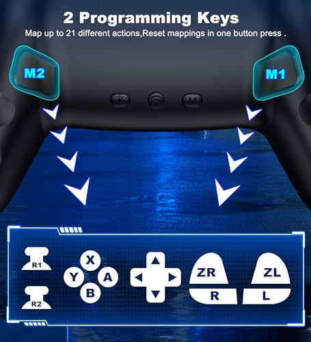 - 21-ACTION BACK BUTTONS: PRO PC CONTROLLER CUSTOMIZATION: Map 21 commands per back button (A/B/X/Y/d-pad etc.) via M+M1/M2 programming. Erase all mappings instantly with M+"-".