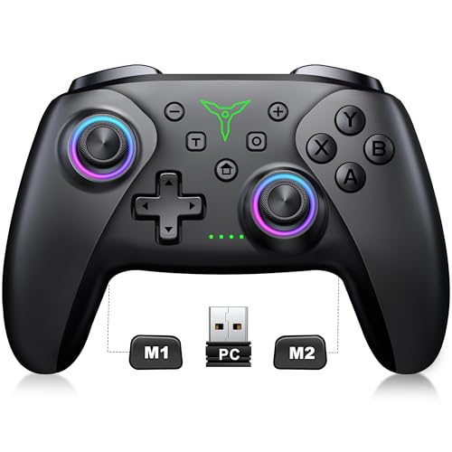 PC Controller, Wireless Bluetooth Controller, 1000mAh Battery, with Hall Effect Joysticks & Triggers, No Dead Zone, No Stick Drift, Controller for PC, Switch, iOS and Android, Cool Dynamic Light