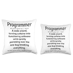 Our Funny Programmer design is perfect for programmers who enjoy adding humor to their work, celebrating the challenges and quirks of coding life with a playful twist. This design makes a great gift for software developers, coders, and tech enthusiasts, ideal for wearing during coding sessions, developer meetups, or just for sharing laughs in the tech industry. 100% spun-polyester fabric Double-sided print Filled with 100% polyester and sewn closed Individually cut and sewn by hand Spot clean/dry clean only