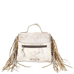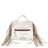 • *Leather exterior with fringe details *Magnetic closure and zipper pockets *8.5"Lx2.75"Dx7.5"H