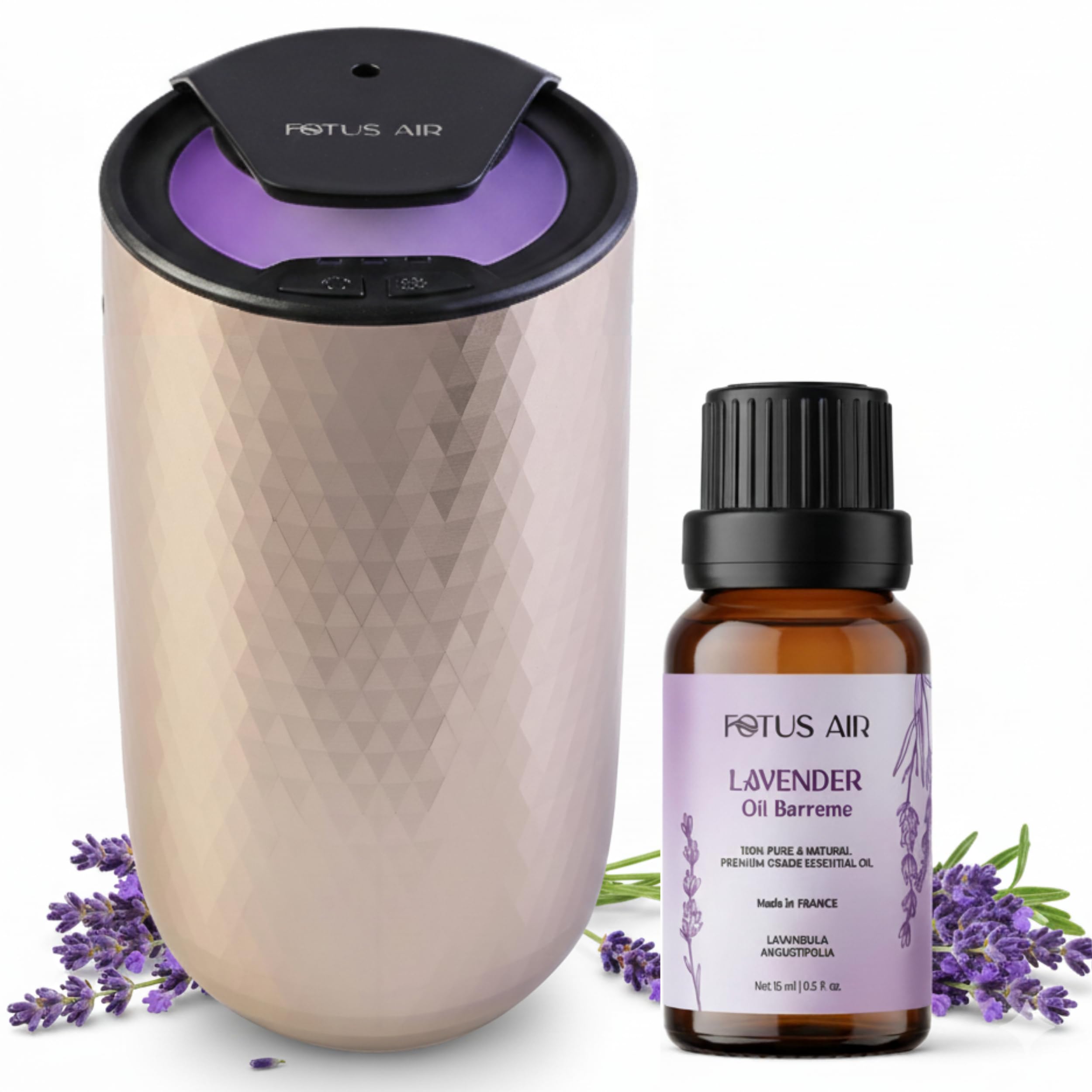 - Fotus Air Portable & Rechargeable Waterless Essential Oil Diffuser – Sleek Aluminum Aromatherapy Diffuser for Home, Car, Office & Travel Experience effortless aromatherapy anywhere with the Fotus Air Waterless Essential Oil Diffuser. Designed with a premium aluminum alloy body and advanced cold air diffusion technology, this cordless essential oil diffuser disperses fragrance without water or heat, preserving the natural benefits of your oils. Perfect for home, office, car, bedroom, or travel, it provides pure, long-lasting aroma and can effectively cover small to medium rooms. Choose between 3 adjustable mist intensity levels for customized scent strength and enjoy 3 calming LED light options to create the ideal mood. Featuring a USB-C rechargeable battery for true portability, this compact diffuser is also designed to work while plugged in for continuous operation. Compatible with most 10ml–15ml essential oil bottles, it offers convenience with no messy refilling.