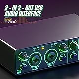 2X2 USB Audio Interface for PC Mac Laptop, 24Bit 192kHz for Computer Recording, Guitar, Streaming, Podcasting, with 48V Phantom Power, XLR TSR TS Ports