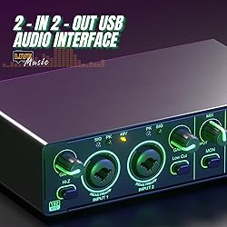 Ultra-High Sound Quality: Recording and playback up to 192kHz/24Bit for crystal-clear audio with this audio interface, zero latency monitoring, noise-free operation for pristine audio quality 2 In 2 Out: USB audio interface designed with universal 6.35mm/XLR inputs and 6.35mm outputs for most musical instruments, microphones, and speakers, great for guitarist, vocalist, podcaster, producer, songwriter... 48V Phantom Power: Enabled at the XLR socket for powering condenser microphones, USB audio interfance ensures high-quality sound capture Dual Power Supply: USB audio interface supports DC5V and USB2.0 power sources, compatible with Windows and Mac OS systems Independent Knob Control & Light Indicators for each channel, allowing easy monitoring of signal input status, real-time monitoring through the pre-amp input, perfect for guitarists, vocalists, podcasters, producers, and songwriters Durable & Portable: Solid metal case, compact size and lightweight design for easy storage and carry, ideal for recording, podcasting, streaming, and room meetings