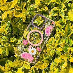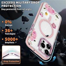 CARLOCA for iPhone 16 Pro Case,Pink Pressed Flower Compatible with MagSafe & Magnetic Wireless Charging,Shockproof Protective Phone Case Cover for iPhone 16 Pro, Clear Pink