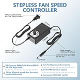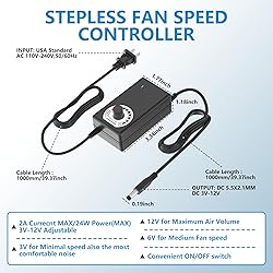 Small 120mm 12v computer fan powered by a wall-wart. it’s really easy to adjust their speed with a knob. it works great for DIY fan or as an additional cooling fan for your gaming needs, such as plant cabinet, RV refrigerator, X-box, ps4, Amplifier, kitchen window, server, humidifier, mushroom growing, sound system, etc The variable speed fan is great for cooling electronic components. This is especially true when components are used in a cabinet with limited air flow to help cooling. By having variable speed, you can adjust the speed for proper cooling with the least fan noise from the circulating air. And you can Plug in a wall outlet to use Adjustable Wind: We have taken into account your various needs, the fan can rotate speed from 750rpm to 3000rpm, providing the most suitable wind to quickly cool your devices down. You can get just the right airflow with the lowest noise It can be used as small window fan to exhaust and intake; Increased air circulation in crawlspace, basement, attic, and garage; or as exhaust fans for enclosed server cabinets, DIY media rack project, small smoking corner, gaming cabinet You will get a Cooling Fan 120mm 1x Speed Controller, 4x Install Screws, 4x Rubber feet
