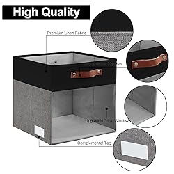 [4 Pack Linen Storage Bins with Clear Windows] With the unique clear window design of the storage cubes, you can quickly find your items. The fabric of the storage bin is premium linen, with no smell. Each bin with two handles can hold up to 33 lb with a rigid structure. [Large Capacity Foldable] Measures 13“(L) x 13”(W) x 13"(H). Foldable design of the storage box allows you to stack it to save space when not in use. We also provide extra 10 self-adhesive blank labels to keeping your space well-organized. [Exquisite Details] The handles of the storage cubes are made of soft leather, durable and classical. 2.5mm high quality cardboard on the sides and bottom help the storage bins keep firm and unbending. The heavy cardboard on the bottom is sewn together with the bottom fabric so you will not lose or forget it when you fold up the cubes. [Multi-Purpose Use] These fabric storage cubes for organizing can be used in shelves, cabinet, bedroom and office. The elegant appearance of the storage cubes is perfect for all room styles. The cube organizer bins are good at storing clothes, shoes, towels, magazines, small records and albums. The foldable storage cubes are good storage helpers for your whole family. [Shop with Confidence] Good products come with good services. We are confident of the quality of our products. If you have any concerns or suggestions about the foldable fabric storage bins, please feel free to contact us at any time. We will try our best to solve the problems for you.