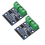- Product description: 1. Dual L9110S chip motor drive 2. Module supply voltage: DC 2.5V -DC 12V 3. Suitable motor range: Motor operating voltage is between 2.5V-12V, maximum operating current is 0.8A. The voltage and current of smart cars on the market are within this range. 4. Can drive 2 DC motors or 1 4-wire 2-phase stepper motor at the same time. 5.PCB board size: 2.8CM*2.1CM ultra-small volume, suitable for assembly 6.Fixed mounting holes, diameter: 3MM Pin header instructions 1.VCC external 2.5V-12V voltage 2.GND external GND 3.A-1A external microcontroller IO port 4.A-1B external microcontroller IO port 5.B-1A external microcontroller IO port 6.B-2A external microcontroller IO port 4P terminal instructions: 1.MOTOR-A connects to 2 pins of DC motor, no direction 2.MOTOR-B Connect 2 pins of DC motor, no direction Instructions: Connect VCC , GND module power indicator light A-1A input high level, A-1B input low level, MOTORA motor forward: A-1A input low level, A-1B input high level, MOTORA motor reverse; B-1A input high level, B-2A input low level, MOTORB motor forward; B-1A input low level, B-2A input high level, MOTORB motor reverse; Package contains: 2PCS L9110S DC Motor Driver Module