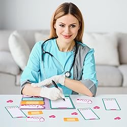 CNA Sticky Notes: You'll get dotted line sticky notes, tabbed sticky notes, 3 types of nurse elements sticky notes, 1 type of nurse's hat sticky note, and 1 type of heart-shaped sticky note. There are 50 sheets of each type, totaling 550 sheets, enough to meet all your needs. Unique Design: The notepads are based on the theme of certified nurse assistant and hospital, and the sticky notes have different types of nurse elements images, which are simple and fashionable. It can add beauty to your books, desk and room, bring you a pleasant mood Material: The sticky note is made of paper material, it is easy to write, the color is long-lasting and it is good adhesion. It can be used many times and will not leave glue after tearing off Practical Gift: It is an ideal teacher appreciation gift, it can be used as a practical notepad for recording messages, to-do lists, notes, or as a bookmark for categorization, and can also be given to students, bosses, coworkers for birthdays and new years Widely Used: Certified Nurse Assistant theme writing sticky notes are suitable for home, school, office and so on. They are practical teacher and nurse appreciation gifts, they can be used for daily reminders, textbooks, reading, journals, and can also be pasted on doors, walls, computers, refrigerators to make your daily life more convenient