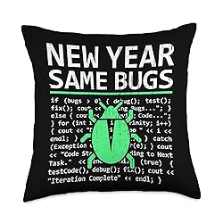New Year Same Bugs, Funny Programmer Developer Debugger Throw Pillow