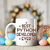 - Best Python Developer Ever 11oz White Ceramic Mug: Monizilucky creates unique funny coffee mugs which make great Birthday gift ideas for men, Birthday gift ideas for women, Valentine’s Day gift ideas, Mother’s Day gift ideas for Mom from Daughter or Son, Father’s Day gift ideas for Dad, Anniversary gift and Christmas present ideas for him or her. This funny coffee mug is made out of high quality ceramic. If you're shopping for a gift, you've found the one. Have a great gift delivered to their door, on-time in a nice gift box. This is the perfect mug for you or for someone you want to bring a smile to. A perfect size mug you can drink tea, soup or coffee out of. ● Printed in the USA ● Worldwide shipping ● Print type: Sublimation printing ● Material: Ceramic ● Color: White ● Sizing: 11oz ● Printed on both sides.