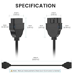 🔌 【Plug-and-Play Simplicity】: Connect directly to your car’s OBD2 port and scanner/VCI—no adapters or setup. Ideal for quick diagnostics installations. 🚗【Universal OBD2 Compatibility】: Suitable for all post-1996 vehicles with standard 16-pin ports (Fit for Toyota, Ford, BMW, etc.). Note: This cable does NOT support the CAN FD and DoIP protocols. 🔧【Extended Reach for Flexibility】: The 1 meter (3.3 ft) long cable allows freedom of movement during maintenance - data can be monitored from the driver's seat, as well as work safely under the hood. The housing is tensile and oil resistant to the harsh environment of the workshop. ⚡ 【Stable signal transmission】: With high-purity copper core cables, the data response speed is as fast as the direct connection, avoiding diagnostic errors caused by signal interference. 🛡【Reliable Support & Warranty】: 1-year warranty + lifetime technical assistance. Please make sure that your diagnostic device is standrd obd2 16 pin.If any customers receive defective or used extension cable. Contact ANCEL’s engineers via [email protected] for troubleshooting or replacements.