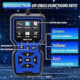 【Accelerate and Precisionize Your Car Diagnostics】: This cutting-edge OBD2 scanning device offers extensive OBD2 capabilities. Read and clear codes with ease, verify I/M readiness, seize freeze frame data, obtain your vehicle's VIN, assess EVAP systems, and access live data streams presented through graph displays. It incorporates 35,901 built-in DTCs, onboard monitoring, and component evaluations. Maintain your vehicle's condition, saving you time and money on avoidable repairs. 【Lively 2.8" Display and Intuitive User Interface Redesign】: Experience utmost clarity on our 2.8-inch color screen. Customize your experience by choosing between dark or light modes and adjust the brightness as you desire. The renovated user interface is crafted for simplicity, making it a perfect option for both novices and experts. Navigate setup, OBDII diagnostics, I/M readiness, and DTC search and check effortlessly. Our intuitive UI leads you step by step, creating a smooth and stress-free experience. 【Swift Hot-Keys for Hassle-Free Navigation】: Streamline your experience with the 3 rapid-access hot-keys of our car check engine code reader. The "F2" key promptly shows the I/M readiness status, ideal for smog checks. Press "F1" to instantly read current fault codes and identify problems precisely. Once you're done, the "EXIT" key smoothly returns or exits the menu. Designed for home mechanics, DIY enthusiasts, dealers, beginners, and auto repair shops, these hot-keys make every operation effortless. 【Plug & Play】: Bid farewell to batteries and chargers. Our OBD2 scanner connects seamlessly to your vehicle's OBD2 interface, keeping you updated on your car's status all the time. The vehicle code reader's visual indicator light provides immediate insights: red for faults, yellow for incompatibilities, and green for successful connections. Stay informed without any complications. 【Universal Compatibility and Multilingual Assistance】: Compatible with 9 protocols after 1996 in the USA, 2002 in the EU, and 2008 in Asia, our car diagnostic scanner is your versatile ally. Note that it is not applicable to new energy or hybrid vehicles beyond the OBD2 protocol. The OBD2 scanner supports 10 languages, including English, German, Dutch, Spanish, French, Italian, Russian, Chinese, Japanese, and Portuguese. If you have doubts about compatibility, we are here to help on Amazon.