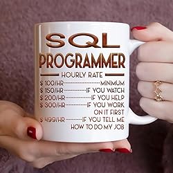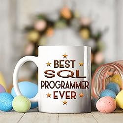 - Best Sql Programmer Ever 11oz White Ceramic Mug: Monizilucky creates unique funny coffee mugs which make great Birthday gift ideas for men, Birthday gift ideas for women, Valentine’s Day gift ideas, Mother’s Day gift ideas for Mom from Daughter or Son, Father’s Day gift ideas for Dad, Anniversary gift and Christmas present ideas for him or her. This funny coffee mug is made out of high quality ceramic. If you're shopping for a gift, you've found the one. Have a great gift delivered to their door, on-time in a nice gift box. This is the perfect mug for you or for someone you want to bring a smile to. A perfect size mug you can drink tea, soup or coffee out of. ● Printed in the USA ● Worldwide shipping ● Print type: Sublimation printing ● Material: Ceramic ● Color: White ● Sizing: 11oz ● Printed on both sides.