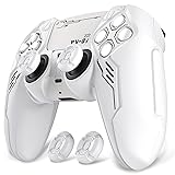 PlayVital Mecha Edition Silicone Cover Compatible with ps5 Controller with 2 Joystick Caps and 6 Stickers, Shockproof Non-Slip Grip Protector Accessories, Fits for ps5 Charging Station - White