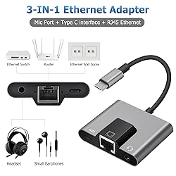 【3 in 1 RJ45 Ethernet Adapter】This USB C to RJ45 Ethernet LAN wired network port + 3.5mm Audio Jack +USB C charging port supports Internet access and charging at the same time. You can connect the network cable to your iPhone 15 or tablet and other USB C devices for wired network access, providing ultra-high-speed Internet access speed, allowing you to watch videos, play games or live broadcast connections more smoothly and get a smoother Internet experience 【Hyper Speed Stable Links】Our ethernet to usb c adapter has ultra-fast data transfer speeds supports up to 10Mbps/100Mbps ethernet LAN wired network. Giving a full play to the performance of your network and ensuring stable network speed. The usb c to ethernet adapter provides ultra-fast network data transfer for your online work, meetings, gaming, HD video streaming, uploading or downloading. The usb-c to ethernet adapter will further enhance your browsing and downloading experience 【Widely Compatible】This Android USB Type-C to 3.5mm headphone adapter is compatible with iPhone 15/15 Pro,iPhone 16/16 Pro/16 Pro Max, iPad Pro 12.9 inch 5th/4th/3th, iPad Pro 11 inch 3rd/2rd/1rd (2021/2020/2018), iPad Air 5th/4th (2022/2020), iPad Mini 6th (2021) (Note: Only compatible with iPad models with USB C connector, please confirm your iPad model before purchasing.) Sam-sung Galaxy S22/S21 Ultra/S21+/S21/S20 Ultra,Note 20/20+/10+/10, Pixel 2/2XL/3/3XL, H-uawei P20/P30/Mate 20 /20 Pro and more Type-C phones, table 【Convenient and Durable】This usb c to ethernet adapter is space saving and easy to carry with its compact and lightweight design. The usb c ethernet adapter has a sturdy case and a cable that has been bent and tested many times, making this usb c to aux adapter very durable. The usb c to ethernet adapter is perfect for business travel, work, education, entertainment and more 【Plug and Play】 Easy to use, USB Type C to RJ45 Ethernet adapter does not require additional applications or software, just plug it in to enjoy fast Internet speed anytime, anywhere. Supports up to 10/100Mbps Ethernet, which can provide ultra-fast Internet network speed. When connected to your mobile phone and network, the blue light will light up and flash, which greatly facilitates your use, so you don’t have to worry about whether the adapter is ready to work