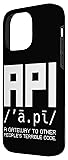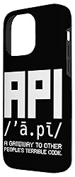 API - A gateway to other people's terrible code. This design is perfect for Developers who love Application Programming Interface, code, and programming. An ideal design for Developers who love Application Programming Interface and code. You are perfect for this API Code design. Two-part protective case made from a premium scratch-resistant polycarbonate shell and shock absorbent TPU liner protects against drops Printed in the USA Easy installation