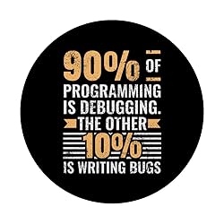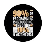 90 of programming is debugging. The other 10 is writing bugs.This design is perfect for Developers who love debugging, programming, and coding struggles. An ideal debugging design for Developers who love programming and problem-solving. You are perfect for this Debugging Struggles design. Adhesive backing attaches the PopGrip to your case or device. Will not stick to silicone, leather, waterproof, or highly textured cases. Works best with smooth, hard, plastic cases. Not compatible with wireless charging Printed top is swappable with other compatible PopGrip models. Just press flat, turn 90 degrees until you hear a click and remove to swap.