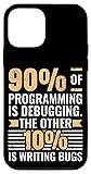 90 of programming is debugging. The other 10 is writing bugs.This design is perfect for Developers who love debugging, programming, and coding struggles. An ideal debugging design for Developers who love programming and problem-solving. You are perfect for this Debugging Struggles design. Two-part protective case made from a premium scratch-resistant polycarbonate shell and shock absorbent TPU liner protects against drops Printed in the USA Easy installation