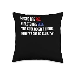 Roses are red, violets are blue, The code doesn’t work, And I’ve got no clue. “:)”. This design is perfect for developers who enjoy debugging, troubleshooting, and writing creative solutions. And an ideal design for engineers who tackle code issues with artistic flair. You are perfect for this Software Developer Poems Troubleshooting Design. 100% spun-polyester fabric Double-sided print Filled with 100% polyester and sewn closed Individually cut and sewn by hand Spot clean/dry clean only