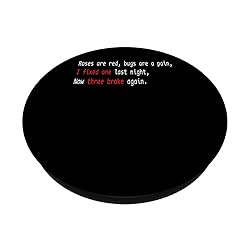 Roses are red, bugs are a pain, I fixed one last night, Now three broke again. This design is perfect for developers who love tackling bugs, writing clean code, and using creativity to debug. And an ideal design for programmers who express their coding struggles in poetic form. You are perfect for this Software Developer Poems Bug Fixing Code Design. Adhesive backing attaches the PopGrip to your case or device. Will not stick to silicone, leather, waterproof, or highly textured cases. Works best with smooth, hard, plastic cases. Not compatible with wireless charging Printed top is swappable with other compatible PopGrip models. Just press flat, turn 90 degrees until you hear a click and remove to swap.