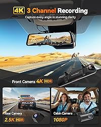[STARVIS 2 4K Mirror Dashcam] Powered by the advanced STARVIS 2 IMX678, the WOLFBOX G900 Tripro's front camera delivers unmatched image clarity with 4K 3840*2160 resolution at 30FPS. STARVIS 2 offers a larger photosensitive area, enhanced low-light performance, and improved dynamic range. This ensures clearer, more vibrant footage with better contrast and detail, even in complex lighting situations [4K Triple Channel Camera] This WOLFBOX rearview mirror camera records in 4K front, 2.5K rear, and 1080P interior for comprehensive coverage. The rear camera features a 1/1.88-inch large sensor, delivering superior light sensitivity with a 2.9μm pixel size. It supports 2.5K 2560*1440 resolution at 30FPS, Purecel Plus Technology enhances night vision, setting a new standard for visibility in the dark [Convenient 5.8GHz WiFi & Voice Control] Featuring 5.8GHz WiFi, the dash cam mirror provides faster and more stable connections to your smartphone. With the WOLFBOX app, you can easily view live footage, replay recordings, and share video. Experience the convenience of voice control, simply command your 3 channel dash cam to start recording or take photos, keeping your focus on the road [Enhanced Safety Features] This rearview mirror backup camera features a durable supercapacitor for stable operation in extreme temperatures, ensuring consistent performance in both cold and heat. The parking monitor (a hardware kit must be purchased separately) adds an extra layer of security, automatically recording around your vehicle when it's parked, offering peace of mind even when you're not around [Reliable After-Sales Service] WOLFBOX offers responsive customer support to assist with any issues or concerns. The dash cam rear view mirror is backed by a 12-month guarantee, ensuring reliable performance throughout the year. It also includes a 256GB card, pre-installed in the rear view mirror dash cam, so you can start recording immediately without the need for extra setup or hassle