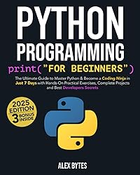 - Are you ready to dive into Python and unlock incredible opportunities for your personal and professional growth?Do you feel overwhelmed by complex tutorials or unsure about where to begin your programming journey?Are you looking for a beginner-friendly resource that teaches Python step-by-step with real-world examples?If you answered YES to at least one of these questions, you MUST KEEP READING…Master Python with Practical Exercises, Real-World Projects, and Insider SecretsLearning Python doesn’t have to be overwhelming. Many resources out there either overcomplicate the process with technical jargon or leave beginners feeling lost. You deserve a simple, effective, and engaging way to learn Python—one that guarantees results.Don’t worry—you’re not alone in this journey. And you’re just one book away from success.Introducing Python Programming for Beginners: A Simple, Fast, and Practical Approach to Learning PythonThis book is designed for beginners who want to master Python quickly and effectively. Whether you’re a student, a professional looking to upskill, or someone who wants to explore programming for personal projects, this guide will help you achieve your goals with ease.Inside, you’ll discover a proven method that breaks down complex concepts into bite-sized lessons, combined with hands-on exercises and real-world applications.Here’s just a glimpse of what you’ll learn:Python Essentials Made Simple: Understand variables, data types, and operators with clear, beginner-friendly explanations.Control Structures Without Confusion: Learn to use loops and conditionals to make your programs smart and dynamic.Functions That Work for You: Create reusable code with functions, parameters, and return statements.Mastering Data Collections: Efficiently manage and manipulate data with lists, dictionaries, and sets.File Handling and Error Management: Read, write, and manipulate files while learning to troubleshoot and debug like a pro.Object-Oriented Programming Basics: Unlock the power of classes, objects, and methods to structure your code efficiently.And much more…🎁 But that’s not all—get these exclusive bonuses when you grab your copy:🗂️ Python Flash Cards: Reinforce your knowledge with targeted flashcards designed to help you master Python concepts quickly and efficiently. Perfect for preparing for certifications like PCEP.📝 Interactive Python Exercises: Practice your skills with hands-on exercises on an online platform. Get instant feedback as you complete challenges, making the learning experience engaging and interactive.⌨️ Typing for Programmers: Improve your typing speed and accuracy with a focused guide on programming-specific typing techniques. Gain the confidence to code faster and more efficiently while reducing errors.These bonuses are designed to supercharge your learning experience and make sure you succeed at every step of your Python journey.Imagine This:In just one week, you’ll go from complete beginner to confidently writing Python programs. Whether you’re automating tasks, building apps, or pursuing a tech career, this book will give you the skills and confidence to achieve your goals.Don’t miss your chance to master Python and change your future!Click Buy Now and start your Python journey today. Success is just a page away!