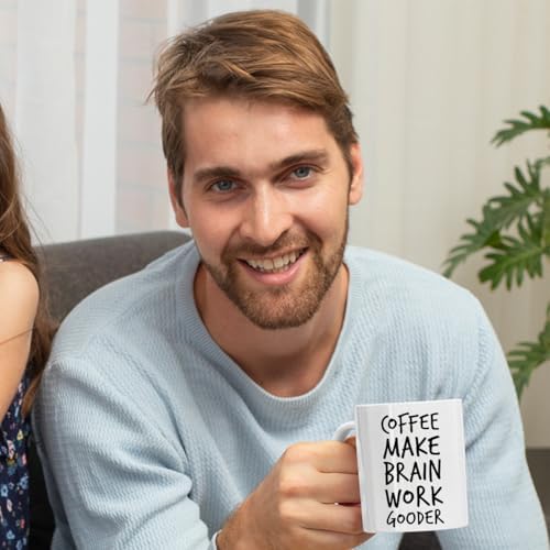 Veracco Coffee Make Brain Work Gooder Mug Funny Coffee Lover Gift Humorous Idea Family Friends Birthday Presents Sarcastic Office Berserk Tea Cup Caffeine Addict Brain Booster Gooder Vibes