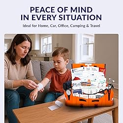 COMPLETE EMERGENCY RESPONSE KIT - Prepare yourself for any unforeseen disaster with the MFASCO First Responder Kit. This meticulously stocked medic bag contains 415 pieces of essential medical supplies, providing you with the tools needed to handle emergencies efficiently. From natural disasters to first aid response, our first aid medical bags are your go-to solution! Assembled in USA. PREPARED FOR EMERGENCIES - Our first aid kit medical bag is carefully organized with a focus on addressing first aid injuries, providing essential supplies for emergency response and immediate care, making it an excellent addition to your preparedness supplies for various emergencies. BE VISIBLE, BE SAFE - Urgency demands visibility! Our first aid kit emergency response bag is fully stocked with a reflective striping design ensure easy identification, even in low-light scenarios. The vibrant orange color further enhances visibility, making it a standout medic bag that aids prompt and efficient access to first aid supplies. CUSTOMIZABLE STORAGE OPTIONS - We understand that every emergency is unique, and quick access to the right supplies is crucial. Our first aid responder kit comes with detachable foam liners, multiple compartments, and loops, allowing you to customize the storage according to your preference. Stay organized and ready for action with this fully stocked first aid kit bag, designed for on-the-go use! DURABILITY YOU CAN TRUST - When seconds count, trust in the resilience of our medical kit bag. This first responder bag endures intense conditions, ensuring your medical supplies remain secured and protected in this reliable and sturdy medical bag fully stocked.