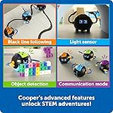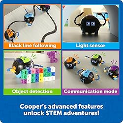 - Looking for an easy way to help kids learn coding skills? Meet Cooper—the smart STEM bot who teaches programming without screens! Kids as young as 5 can build essential programming skills through hands-on activities, giving them a break from digital devices while still learning crucial tech concepts. Cooper comes equipped with black line tracking, light sensing, and object detection features that keep learning fresh and engaging. Kids love watching their robot follow commands, sing, dance, and even communicate with other Coopers! This coding STEM toy comes ready to use with a USB-C charging cable—no batteries required—providing hours of educational fun on a single charge. Everything needed for immediate coding adventures is included: 20 lesson plan cards, 40 coding cards, a ball accessory, quick start guide, and bonus online content in a reusable storage container. Teachers and parents appreciate the well-designed activities perfect for classroom or homeschool settings. As children experiment with programming sequences, they're building logical reasoning and problem-solving skills that transfer to other subjects. Made from durable, wipe-clean plastic, Cooper is built to withstand years of classroom use. Whether students work individually or collaborate in small groups using the easy-to-follow lesson plans, they'll develop confidence in STEM concepts while having fun. Parents and teachers consistently report that Cooper captures attention longer than expected, with children discovering new features and challenges weeks after unboxing.