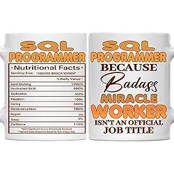 - Funny Gift for Sql Programmer 11oz White Ceramic Mug: Monizilucky creates unique funny coffee mugs which make great Birthday gift ideas for men, Birthday gift ideas for women, Valentine’s Day gift ideas, Mother’s Day gift ideas for Mom from Daughter or Son, Father’s Day gift ideas for Dad, Anniversary gift and Christmas present ideas for him or her. This funny coffee mug is made out of high quality ceramic. If you're shopping for a gift, you've found the one. Have a great gift delivered to their door, on-time in a nice gift box. This is the perfect mug for you or for someone you want to bring a smile to. A perfect size mug you can drink tea, soup or coffee out of. ● Printed in the USA ● Worldwide shipping ● Print type: Sublimation printing ● Material: Ceramic ● Color: White ● Sizing: 11oz ● Printed on both sides.