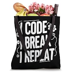I Code I Break I Repeat Funny Programmer Quotes Tote Bag