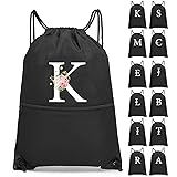 Drawstring Backpack, Personalized Initial Design Drawstring Bags Water Resistant String Bag for Women Men Gym Backpack Track Bag Sackpack Cinch Bags for Sports, Gym, Travel, Beach-Black (Letter K)