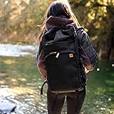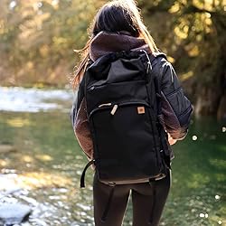 tentree Mobius Backpack 35L – Eco-Friendly Recycled Polyester, Water Resistant, 15" Laptop Sleeve, Multi-Functional Travel Daypack, Roll-Top Closure - Black