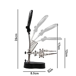 Helping Hands Tool for Precision Work: This adjustable magnifying glass acts as a reliable "third hand" for soldering electronic circuit boards and high-precision tasks, keeping your view steady and clear. LED Light for Dark Environment Visibility: Bright LED illumination ensures clear visibility in low-light conditions—perfect for detailed electronics repair, engraving, or crafting. Dual Power Options – Battery or USB: The helping hands magnifier can be powered by 3 AAA batteries (package without batteries) or connected via USB cable for continuous use at your workbench. Enhanced Alligator Clip for Secure Mounting: Heavy-duty clip firmly attaches to desks or metal surfaces, ensuring the magnifying glass stays in place like a true "helping hand." Versatile Use for Repair & Fine Work: Ideal for repairing electrical appliances, jewelry making, watch repair, and other detailed crafts—this helping hands tool solves precision challenges with ease.