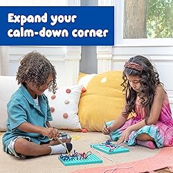 - Encourage calm focus with this satisfying sensory activity! This mess-free art kit will give your child a chance to explore their creativity while developing early writing and drawing skills like pincer grip. Kids will love the tactile process of pushing the pens into the holes and pulling the laces out again. Create relaxing patterns, sequences and designs. Construct shapes, numbers, letters or drawings. Connect the boards on all sides to add space or play in small groups. These lacing boards are ideal sensory toys for toddlers, including those with autism and special needs. They’re also lightweight and easy for small hands to hold. Explore guided exercises to practice mindfulness, breathing, tracing, counting and more with our included activity guide. Keep a set of these threading boards with your calming-corner supplies or occupational-therapy games. Use them in the classroom for social-emotional-learning tools, calming-sensory items or self-regulation products. Includes: 2 threading boards, 2 threading pens, 8 laces with 4 different colors and an activity guide. For ages 3+. || Size of each threading board: 5.5”H x 7.7”W.