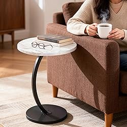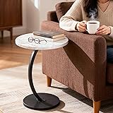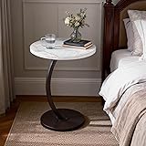 Hsingchi Modern Small C Shaped Side Table, Round Bedside Sofa end Table,TV Tray Table for Eating, Simple Night Stand, Narrow Side Table for Living Room, Bedroom, Office