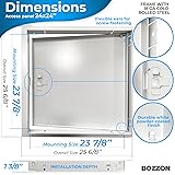 Metal Access Panel for Easy Utility Access: This metal access panel ensures convenient access to hidden plumbing, electrical, security, and HVAC systems in both residential and commercial spaces. Ideal for ceilings and walls, it conceals cables, water valves, and unsightly openings while maintaining a sleek appearance. Designed for durability, it offers a practical solution for renovations and maintenance, blending seamlessly into any indoor or outdoor setting Durable Metal Access Panel for Drywall: Constructed with an 18 GA cold-rolled steel frame and fully coated in white powder paint, this metal access panel offers superior strength and corrosion resistance. It will not fade, discolor, or rust, making it ideal for basements, attics, and bathrooms. The smooth, paintable surface allows for easy customization to match any décor, while its water-resistant design ensures long-lasting performance in any environment Easy Installation – Metal Access Panel with Latch, Opens with a Screwdriver: This metal access panel provides secure access in both commercial and residential settings. The wall cutout size for a 24x24 in panel is 23 7/8 x 23 7/8 in, and the panel thickness is 1 3/8 in. Position the panel, trace the frame, and cut the wall slightly larger than the marking. Use a bubble level for alignment, then secure with caulk or screws for a reliable installation. Ideal for confined or hard-to-reach areas Durable Design – All Sizes with Welded Frame & Concealed Hinge: This metal access panel features a welded frame for all sizes and a concealed door hinge mechanism for a sleek, seamless look. The curved door cover ensures durability, while rounded safety corners enhance protection. Designed for surface or flush mounting, it opens smoothly to 140 degrees and sits nearly flush when closed, making it discreet and secure. A strong, long-lasting solution for drywall installations Bozzon metal access panels provide a durable and secure solution for drywall installations. Available in multiple sizes, they ensure a perfect fit for any project. Built to last, they come with a Lifetime Warranty and a Money-Back Guarantee—offering a refund for any reason, no questions asked
