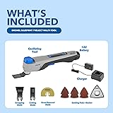 MASTER MULTI-TASKER: Perform a wide array of tasks with one tool, making it indispensable for any DIY project. SMART TOOL TECHNOLOGY: Intuitive application speed settings tailored to your specific project. EASY ACCESSORY CHANGE: Switch out accessories effortlessly—cut, scrape, sand, and more with just a quick blade swap. LED BACKLIT DISPLAY: Easily find and select options, even in low-light conditions. KIT CONTENTS: MM12V 12V Oscillating Tool, 12V 2Ah Battery, MM482 Universal Quick Fit Cutting Accessory, (6) MM70 Sanding Pads, MM14 Universal Quick Fit Sanding Backer, MM502 Universal Quick Fit Grout Removal Accessory, MM610 Universal Quick Fit Flexible Scraper Scraping Blade, and Battery Charger. DIY BESTIE: Whether you’re restoring thrift finds, refreshing your bathroom vanity, or refinishing your stairs, this versatile tool has got you covered. ERGONOMIC DESIGN: Comfortable to hold, ensuring you can work on projects for hours without strain. BATTERY GAUGE: Always know when your tool needs a charge. RECHARGEABLE 12V POWER: Your convenient cordless go-to power source for all Dremel Blueprint power tools. DREMEL BLUEPRINT SYSTEM: Part of the versatile, easy-to-use DIY tool system from Dremel, designed for those who enjoy the freedom of doing more projects with fewer tools.