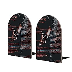 Programmer Programming Code Printed Wooden Desk Bookends, Large Size Set Of 2, Book Holder And Stand For Home, School, Office, Library