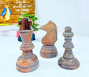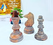 3 Pack Chess Statue Ornaments King Queen Knight Sculpture wood Craft Decoration for Home Office Desk Table Wine Cabinet Arrangement Gift CHESS ACCENT STATUES: These brown wooden chess pieces serve a playful addition to your home for the final finishing touch on any surface space HOME DECOR FIGURINES: Large king, knight, and bishop chess piece statues with shiny, reflective, metallic brown finishes chess piece statue is hand-painted to give it a unique impression and funny design. Any chess player would be thrilled to receive a decorative chess statue.The sculptures can be displayed alone, or multiple pieces can be grouped together.