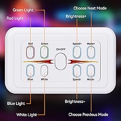 RGBW LED Light Strips Controller: DC 12V-24V working voltage, maximum current: 8A(<2A(each channel)), output power: at 12V <96W, at 24V <192W. It is designed to efficiently manage your RGBW LED lighting needs. Multifunction Control Mode: The controller comes with monochrome controls (red, green, blue, white) and dynamic modes (color changes and flashes), you can easily switch between various lighting effects using the mode buttons. In monochrome mode, the Speed+ button increases brightness, Speed- button dims the light. Easy to Install & Use: Lightweight and small size, length: 3.9 in, width: 2.36 in, height: 1.16 in, it is convenient to connect. RVZONE rgbw led light controller is a perfect decorative Wall Switch Dimmer. Wide Compatibility: Our RGBW LED light strip controller is compatible with a variety of 12V/24V RGBW LED products including LED strips, lights and bulbs. The led controller is an ideal solution for home decor, commercial display and outdoor lighting projects, providing seamless control and enhanced visual effects. Quality Materials: Our dimming switch controllers are made of high-quality ABS plastic, and RVZONE LED controller have IP66 waterproof rating, which making it can be suitable for indoor and outdoor use. It can withstand light rain without compromising performance.