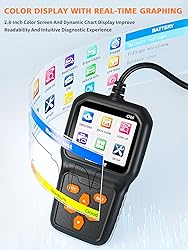 WHY NEED AN OBDII SCANNER: An OBDII scanner diagnositc tool helps you catch issues early by reading and interpreting fault codes, maintaining your car’s performance, and extending its lifespan. By diagnosing problems at home, you avoid repeated trips to the mechanic and reduce overall repair costs. NOT JUST A CODE READER: Beyond simple code reading, this scan tool can do more — freeze frame, I/M readiness, live data stream and curve display(car speed, battery voltage etc), VIN... It also performs EVAP system checks and 02 sensor tests for comprehensive troubleshooting across vehicle system. LATEST RAM & CHIPS: Equipped with upgraded RAM and high-performance chips, CF06 car scanner delivers faster read speeds and a more stable connection than other older models. Its built-in code library has expanded from just 3,000 DTCs to 35,901, ensuring compatibility with a much wider range of vehicles. UPGRADED BATTERY TEST FUNCTION: The enhanced battery assessment feature provides both real-time voltage readings and health-status check, giving you a clear picture of battery condition. By identifying weak or failing batteries early, you avoid unexpected breakdowns and improve overall vehicle reliability. GET DIAGNOSTIC REPORTS EASILY: Generate detailed diagnostic reports directly within the companion app, complete with QR codes for quick sharing with mechanics or record-keeping. These professional-grade reports streamline the repair process and help you communicate issues accurately. EXCELLENT GRIP FEEL: The alloy-edged frame and ergonomic contours provide a comfortable, nonslip grip, reducing hand fatigue during extended diagnostic sessions. This robust design also enhances durability, ensuring the scanner withstands daily garage use. PLUG AND PALY - EASY TO USE: With 2.8'' color screen and intuitive menu interface, plug and play, even DIY beginners can perform advanced diagnostics without learning. 10 language [EN, DE, FR, IT, ES, NL, JA, PT, ZH, RU ] support is convenient for global users. Please check its compatibility with your vehicle before purchasing (the vehicle with OBDII interface and supports the OBDII protocol). This fixed car diagnostic scanner is powered by the car power supply and does not require batteries or chargers.