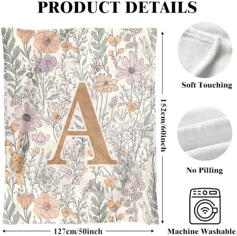 JXREQ Throw Blanket Initial Letter A Personalized Monogrammed Gifts for Women Teen Girls Frends, Boho Floral Throw Blankets for Bed Sofa Living Room Office, 50x60 Inch